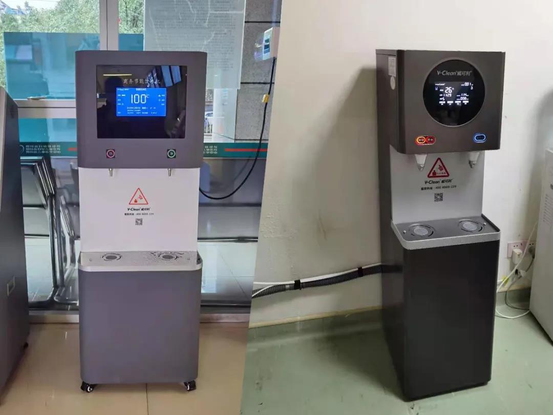 據(jù)介紹,該批設(shè)備采用的是五級過濾凈化系統(tǒng),其中一級是RO反滲透膜濾芯,能有效地去除水中重金屬、細(xì)菌等有害物質(zhì),保障水質(zhì)出水安全;一開一直飲的出水方式,滿足病人和醫(yī)護(hù)人員不同的取水需求;智能系統(tǒng),自動檢測水質(zhì)、濾芯使用壽命、水溫、設(shè)備運行狀態(tài),通過高清LED屏顯示,讓飲水安全健康一目了然。