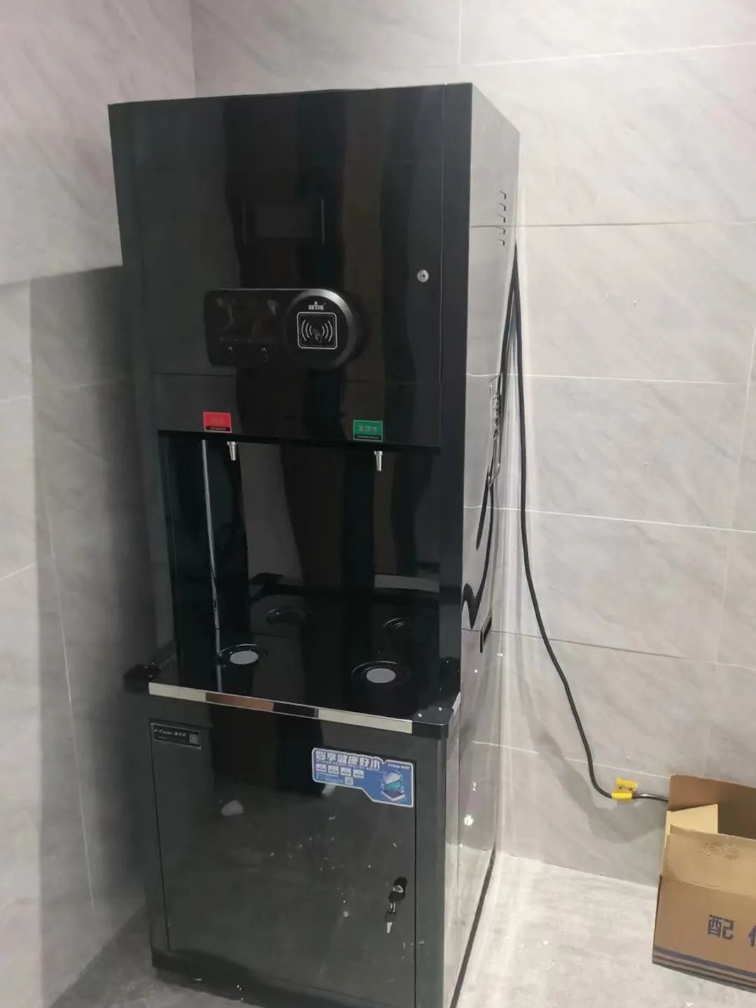 在智能方面,該直飲機搭載了智能微電腦控制系統(tǒng),自動進水、自動加熱、定時開關(guān)機、故障自檢等等,全自動運行,無需專人看管;而直飲機的運行狀態(tài)、水溫、時間、故障提醒等信息則清晰明了地顯示在設(shè)備上方的高清LED顯示屏;直飲機還加裝了刷卡系統(tǒng),只需把水卡放到感應區(qū),然后選擇開水或者直飲水便可輕松取水,取水完畢后自動扣費,不僅方便快捷,還能提高學生們節(jié)約用水、珍惜水源的意識。