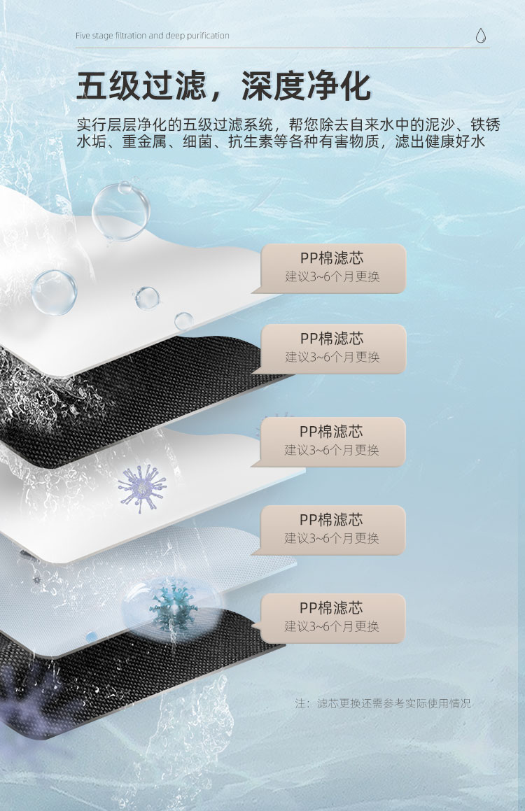 過濾系統(tǒng):五級過濾(RO200+3.2G壓力桶)