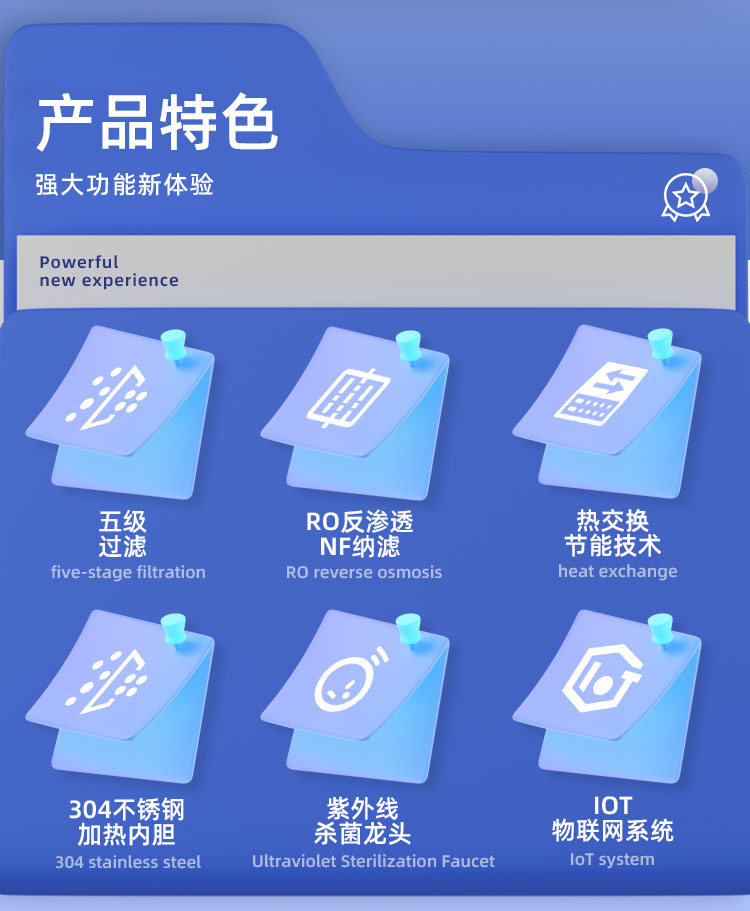 過濾系統(tǒng):五級過濾(RO400+6G壓力桶)