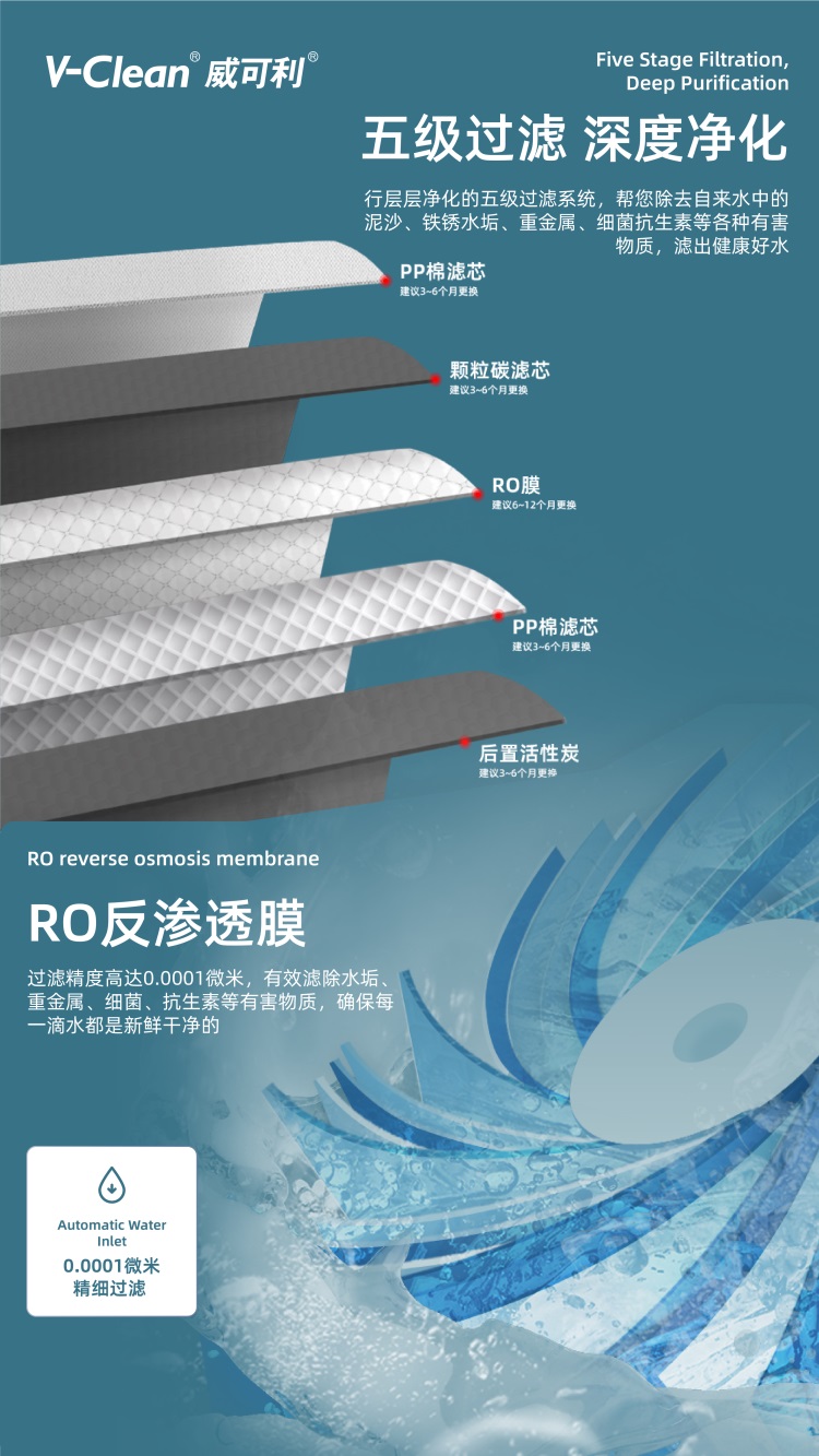 過(guò)濾系統(tǒng):五級(jí)過(guò)濾(RO400+3.2G壓力桶)
